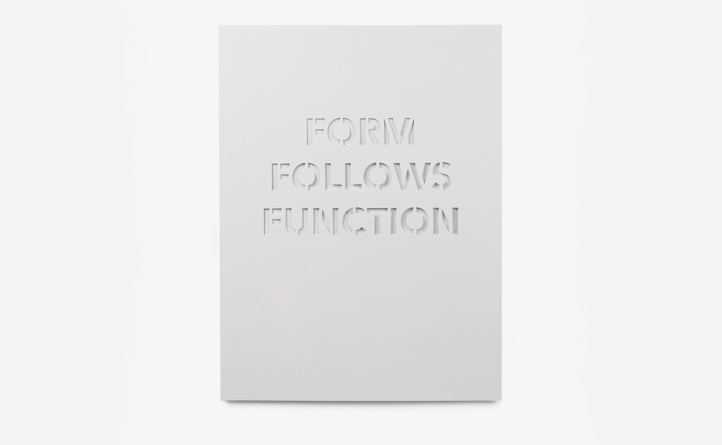 Form follows function is a poster cut out from high quality white paper, repeating the famous quote from American architect Louis Sullivan, and establishing one of the principles of functionalism.