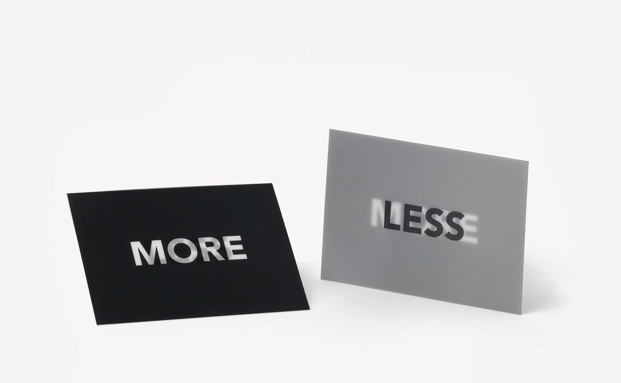 'Less is more' is a lenticular postcard that sometimes shows More, sometimes Less.